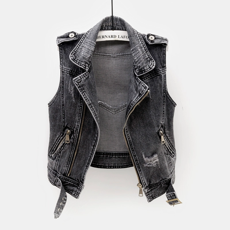 | nameOriginal | Short versatile ripped zipper denim biker vest |