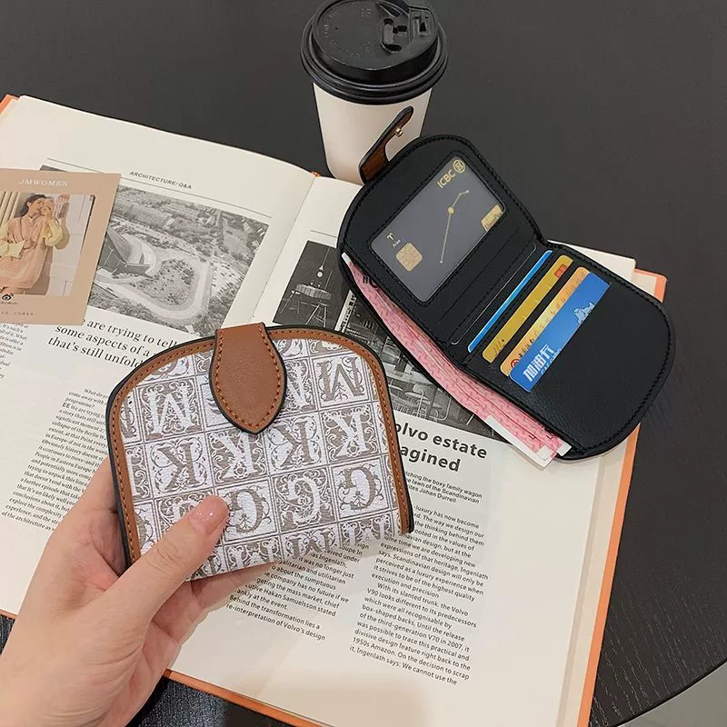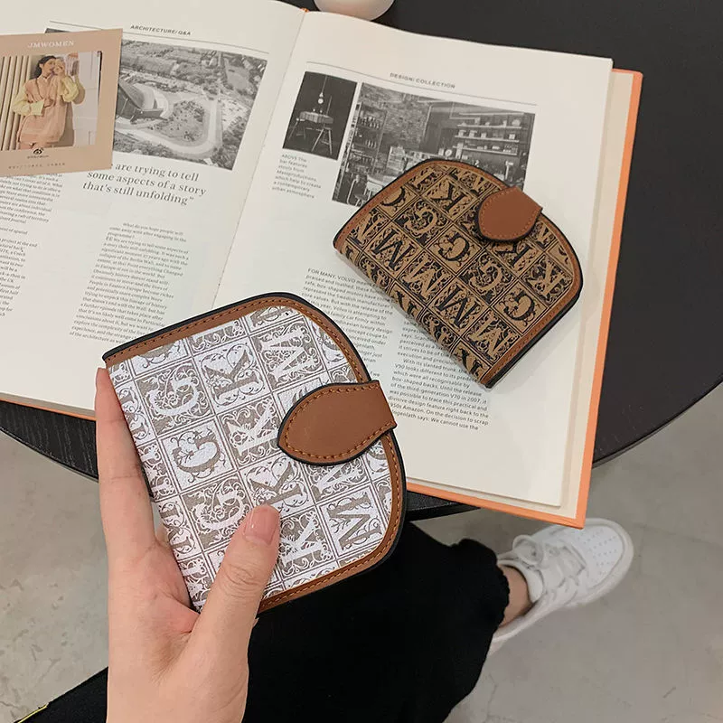 Short wallet card holder integrated coin purse ins student 2022 new retro printed semicircle simple document bag