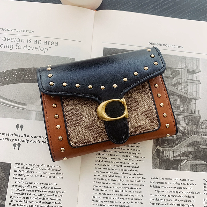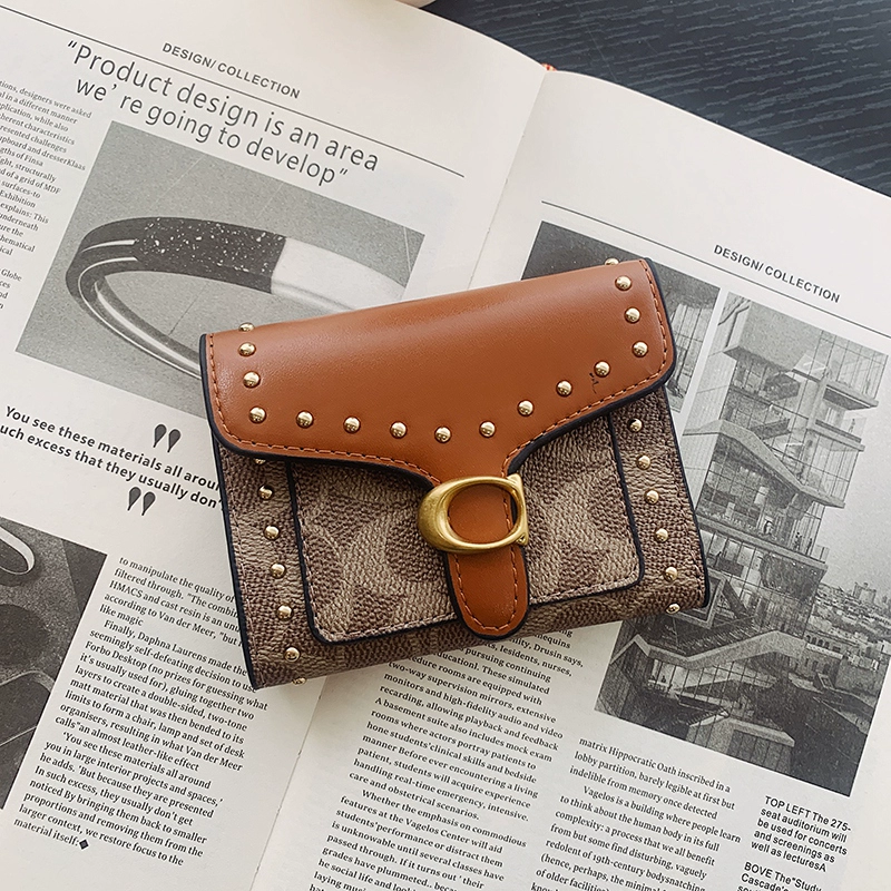 | nameOriginal | Short Wallet Women's 2023 New European and American Contrast Print Folding Multi-Card Wallet Retro Rivet Long Child-Mother Bag |