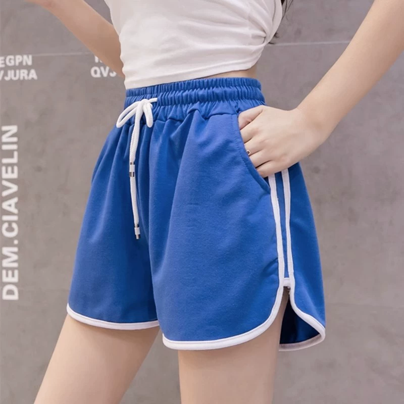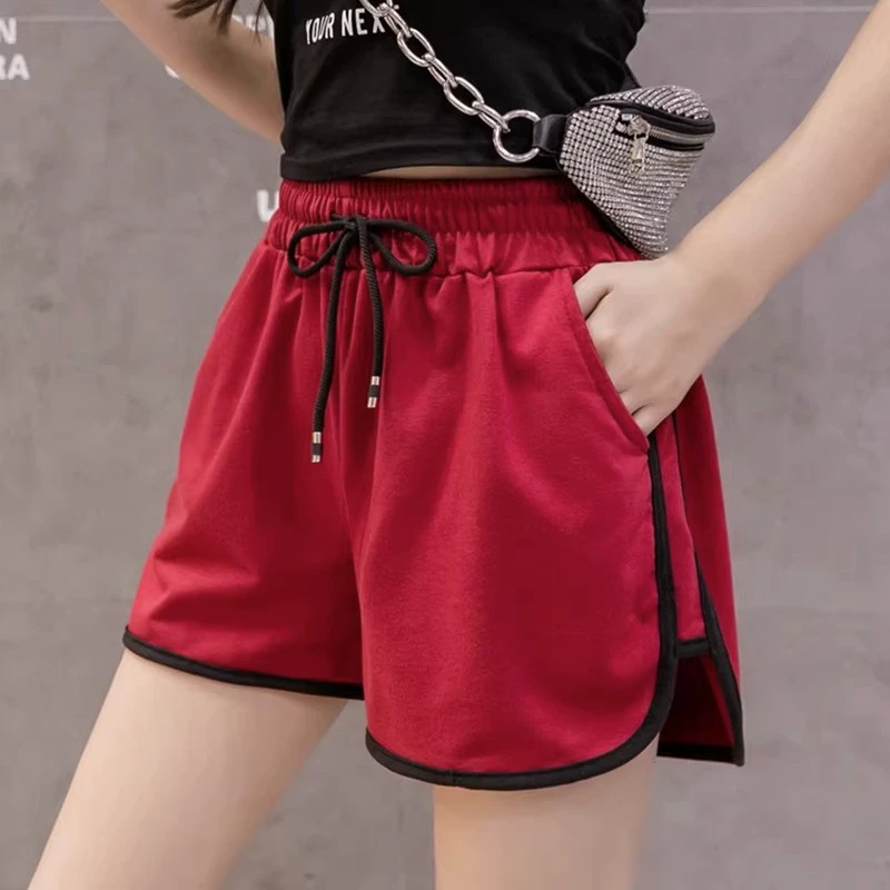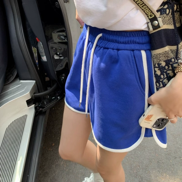 Shorts pure cotton high waist A-line loose casual drawstring