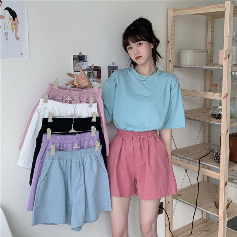 Shorts Summer Women’s 2024 Fresh Style Elastoic Waist A- line Wide Leg Slimming Shorts Loose Ins Multi-color High Waist