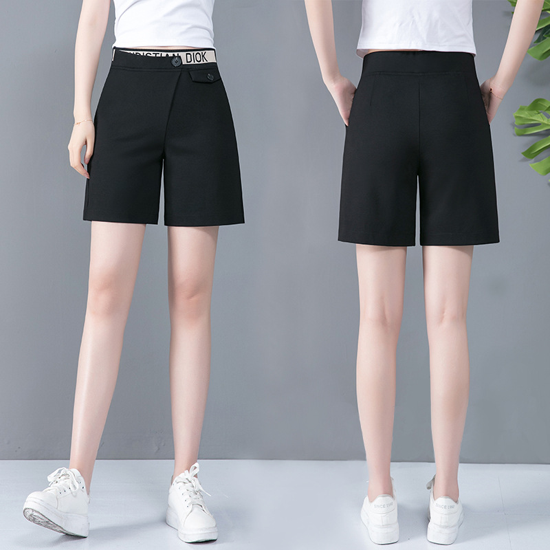 | nameOriginal | Shorts women's high waist A- line cropped pants summer chubby girl plus size loose pants high waist outer wear cropped black wide leg pants |