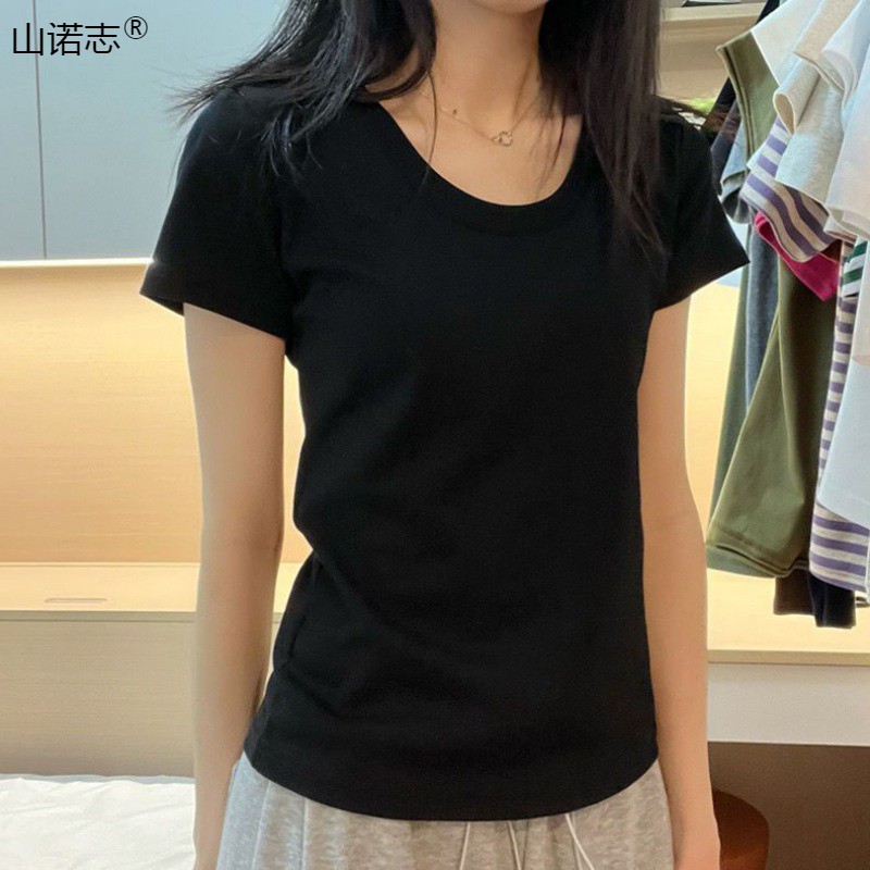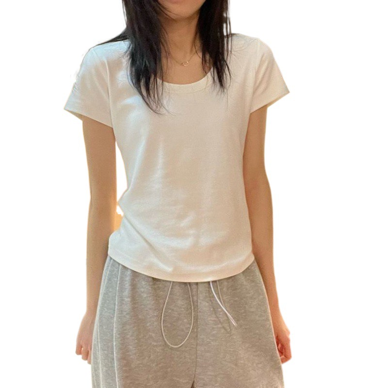 | nameOriginal | Shoulder Classic Basic U-neck Short-sleeved T-shirt Women's Summer Grey Clavicle-revealing Base Shirt Top Women's Ins Hair |