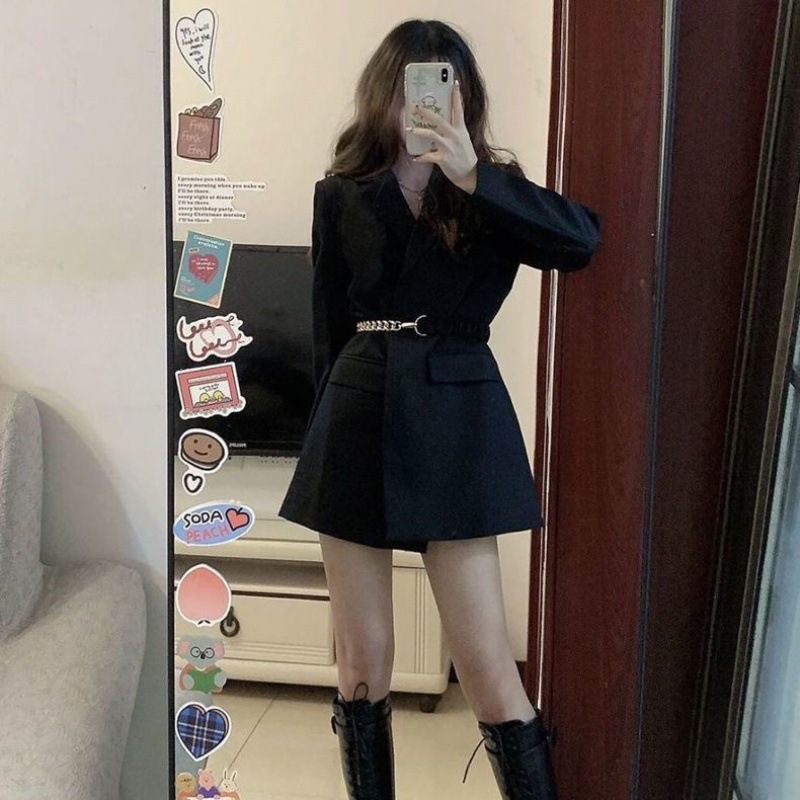 | nameOriginal | Shoulder pad black suit jacket for women Spring and Autumn Korean style versatile casual temperament fairy small slimming fried street suit |