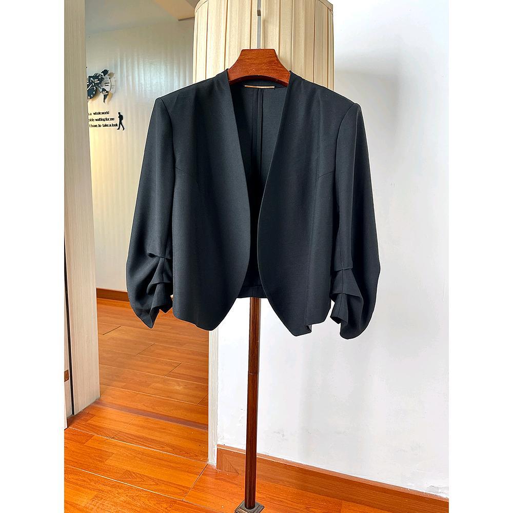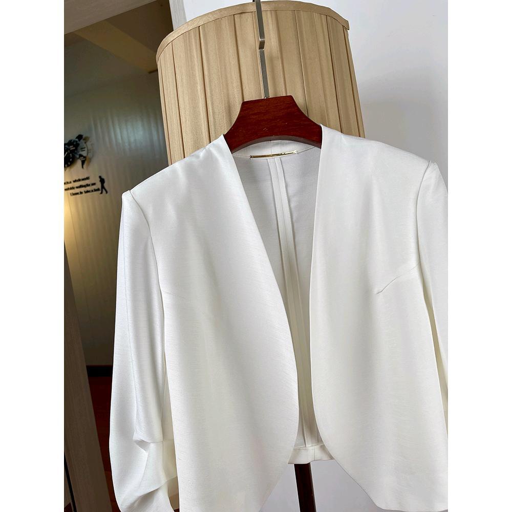 | nameOriginal | Shoulder Pad Collarless Acetic Acid Small Suit Women's Summer Elegant Commuting Simple Buckle-free Cardigan Women's Short Jacket |