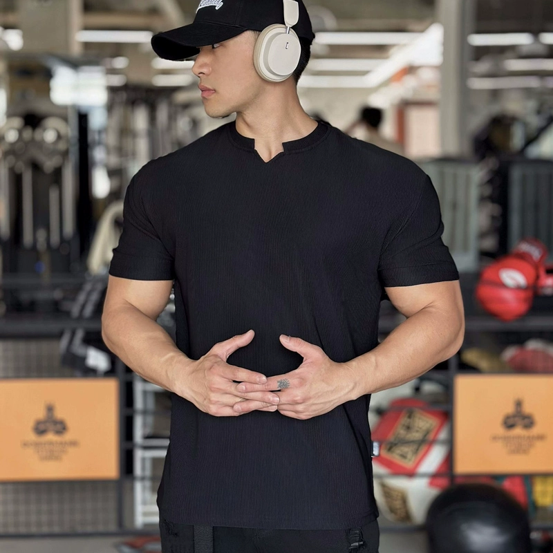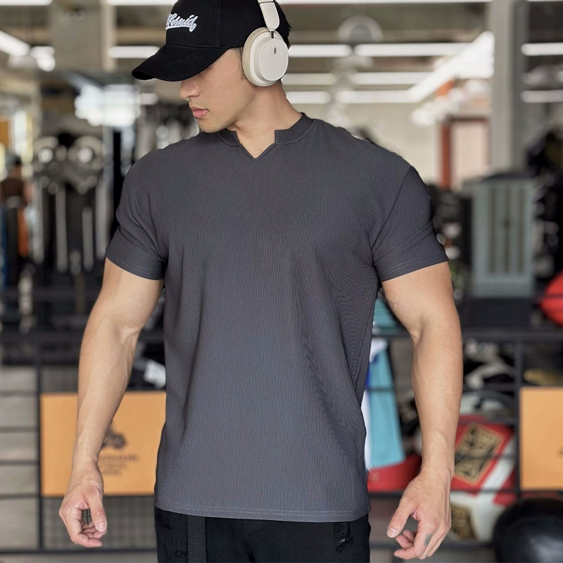 | nameOriginal | Shoulder padded sports men's V-neck quick-drying high-elastic short-sleeved T-shirt |