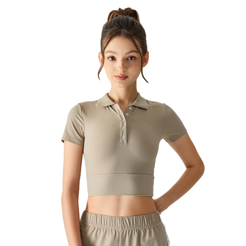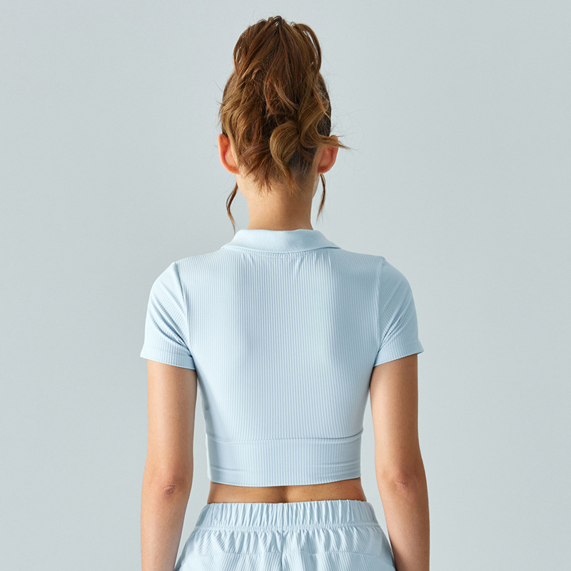 | nameOriginal | Shoulder Polo Collar Yoga Suit Short-sleeved Slim-fit Slimming Short Sports Top Tennis Training Fitness T-shirt Women's Summer |