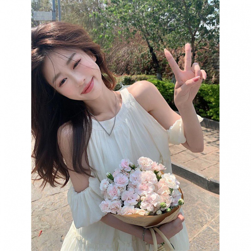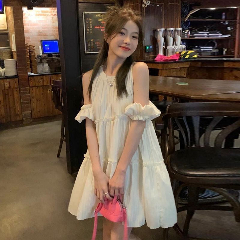 | nameOriginal | Shoulder Short-sleeved dress Women's Summer 2023 New Sweet Design Sense Cary Machine Slimming Shaggy Dress |