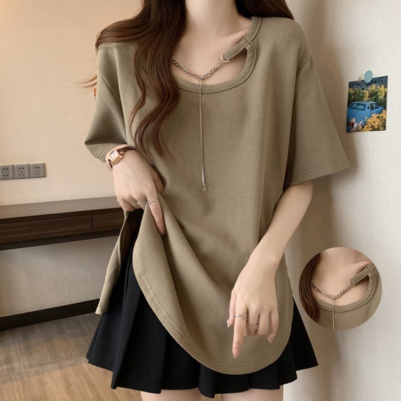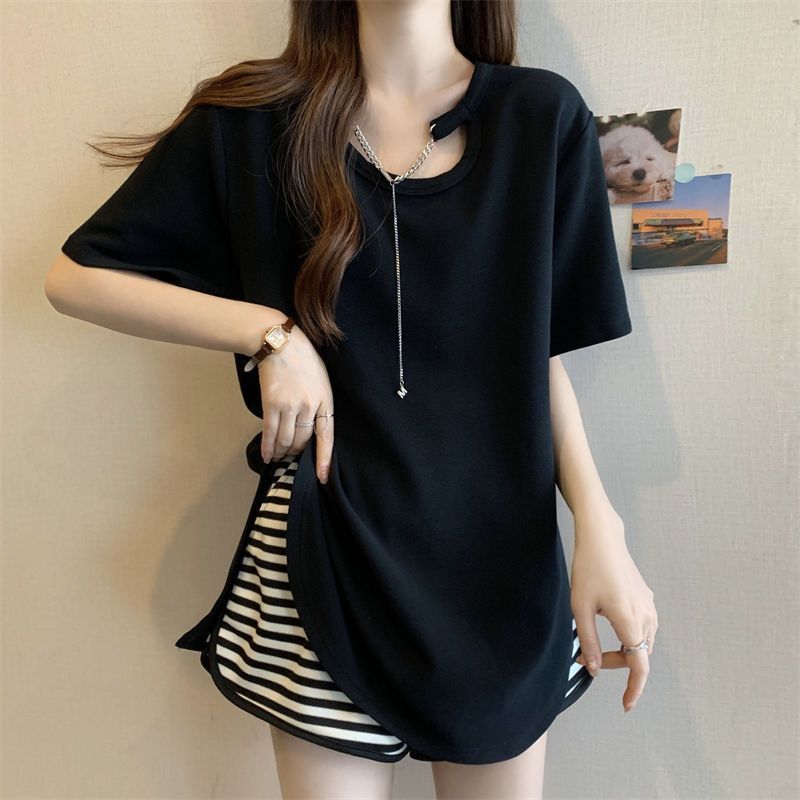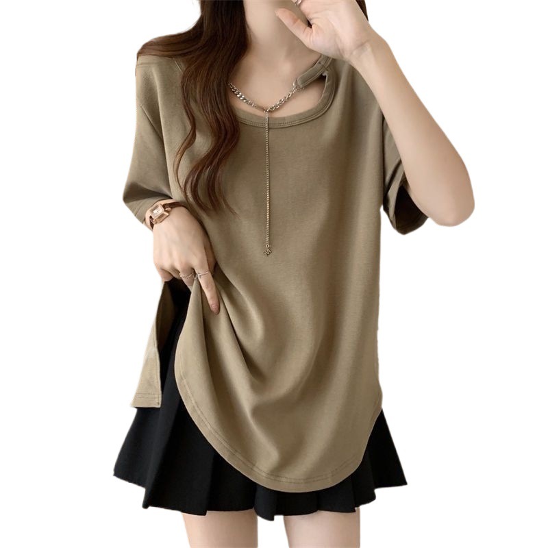 | nameOriginal | Shoulder Short-Sleeved Shirt Women's Summer 2024 New Chubby Large Size Women's Loose Belly-Covering Collar Top |