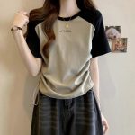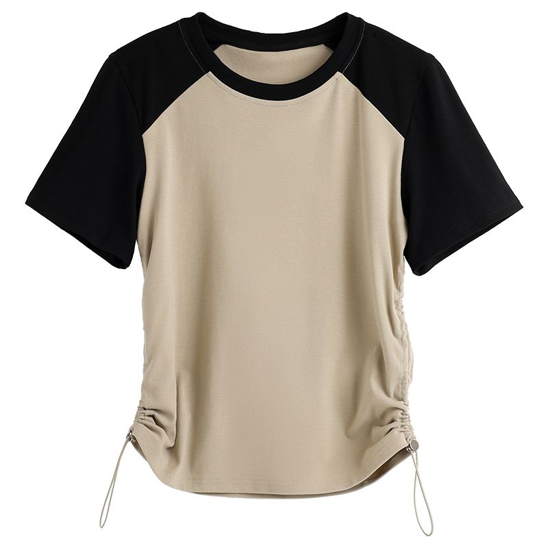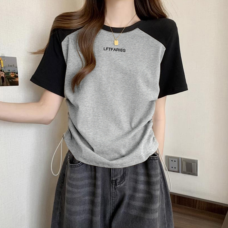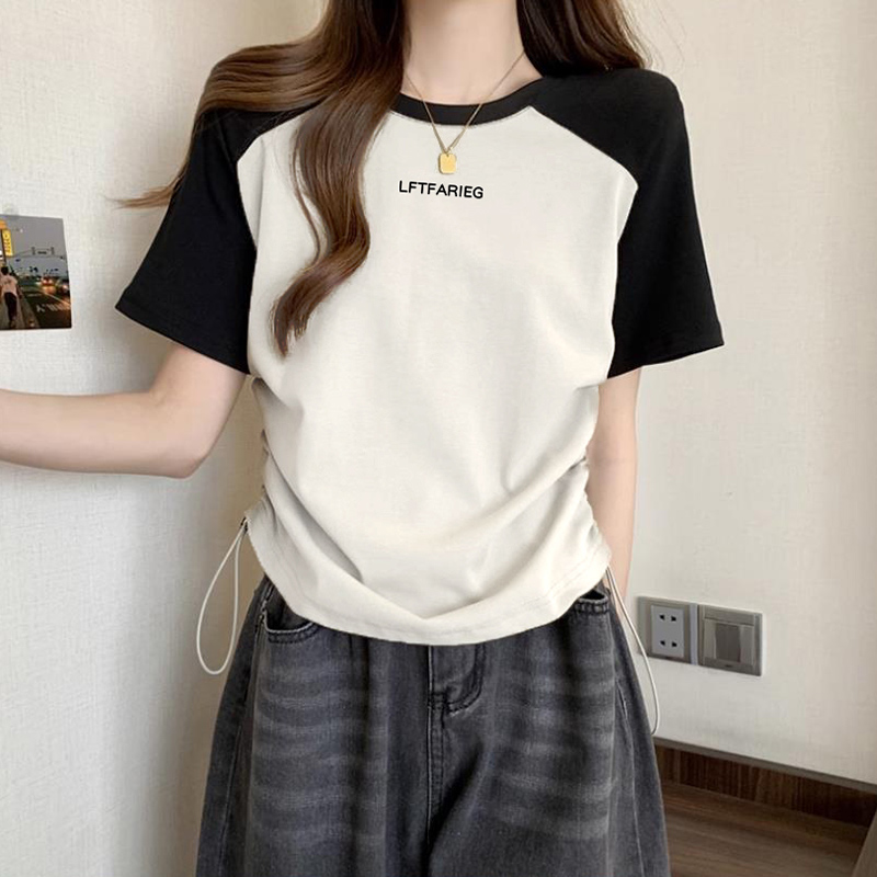 | nameOriginal | Shoulder Short-sleeved T-shirt Women's 2024 New Summer Design Niche Tight Waist Drawstring Slimming Ripped Short Top |