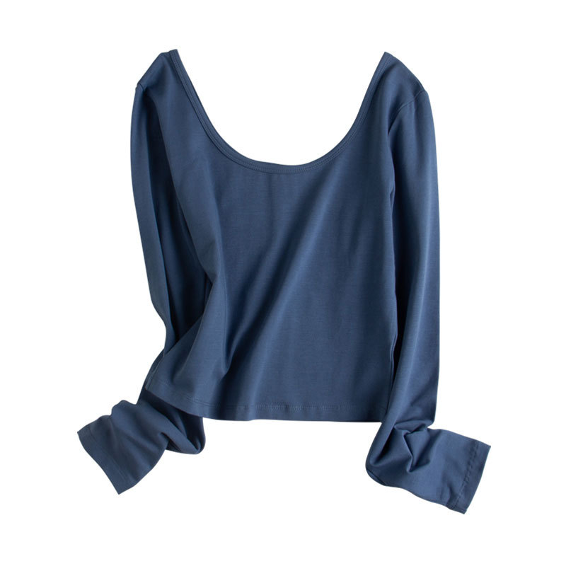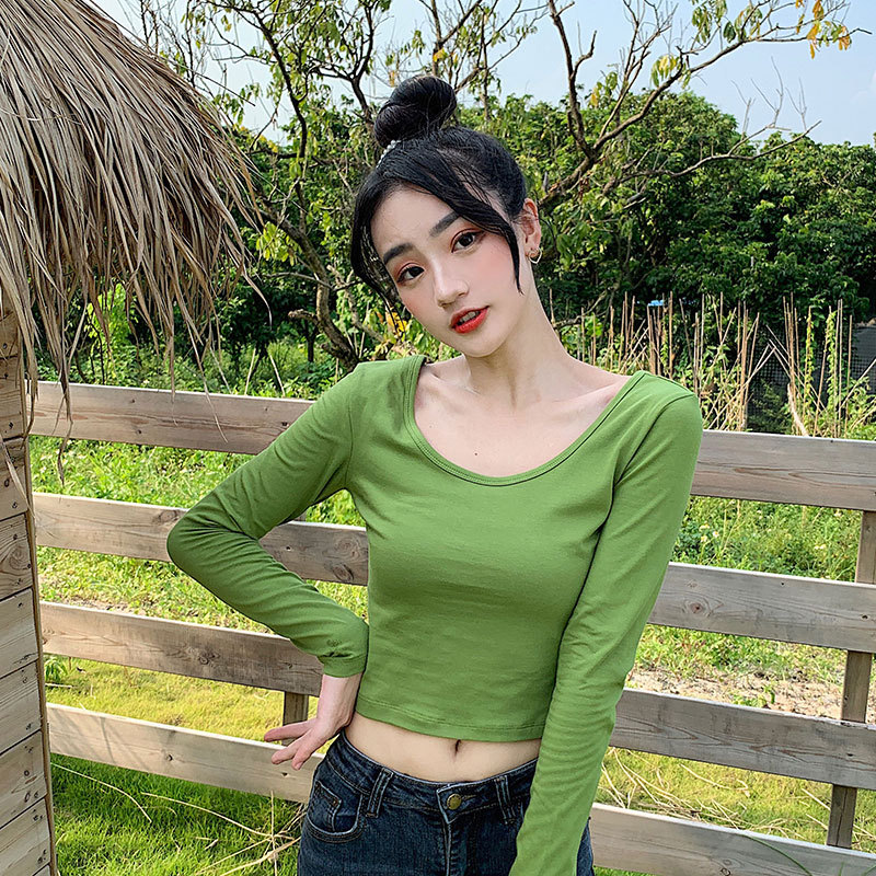 Show Shirt Source Factory Base Shirt Women’s Short Umbilical Inner Double U-Neck Slim-Fit Slimming Long-Sleeved T-Shirt Top Women