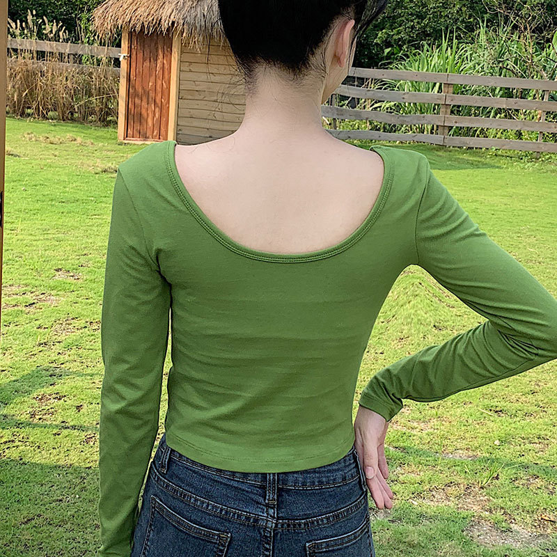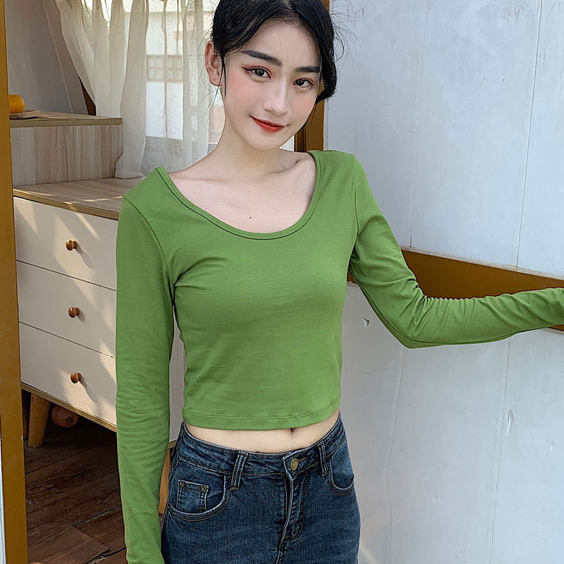 Show Shirt Source Factory Base Shirt Women's Short Umbilical Inner Double U-Neck Slim-Fit Slimming Long-Sleeved T-Shirt Top Women