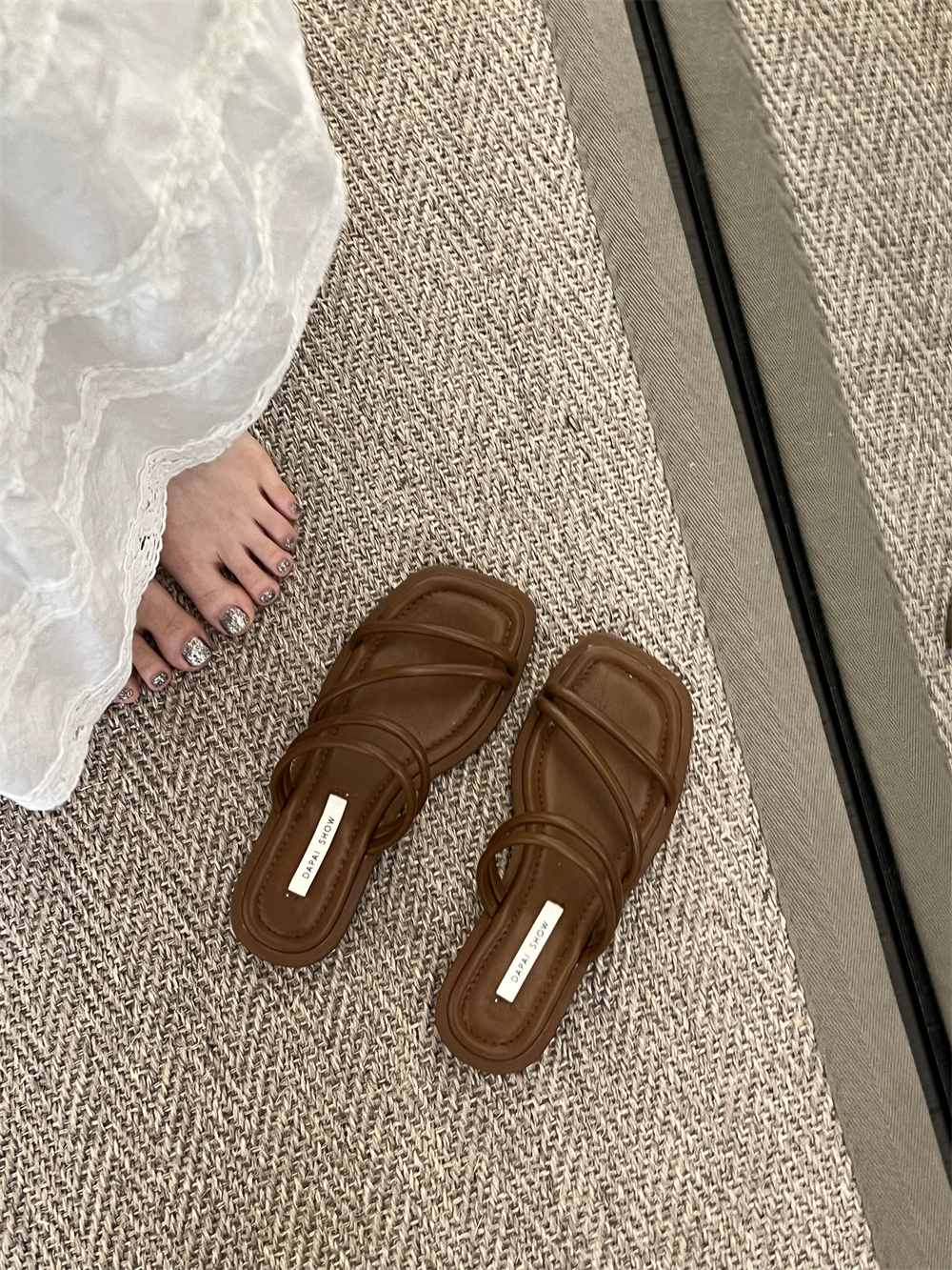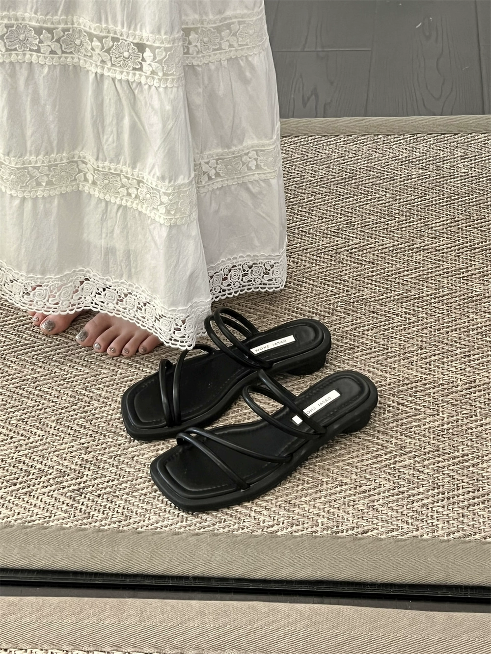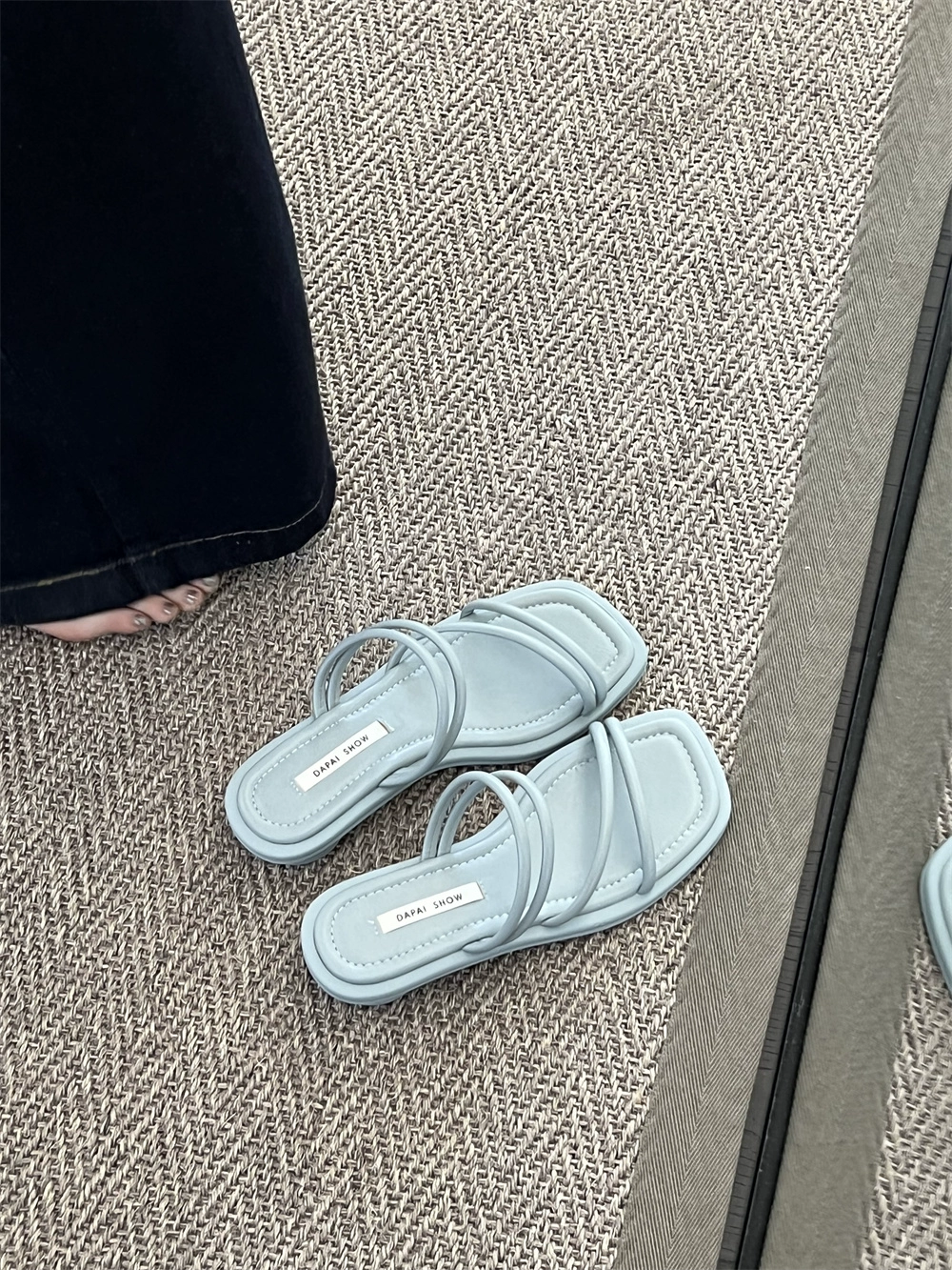 Show your temperament without tiring your feet ~ Thin strap slip-ons for outer wear for women 2023 flat-soled fashion versatile open-toe sandals