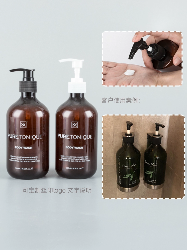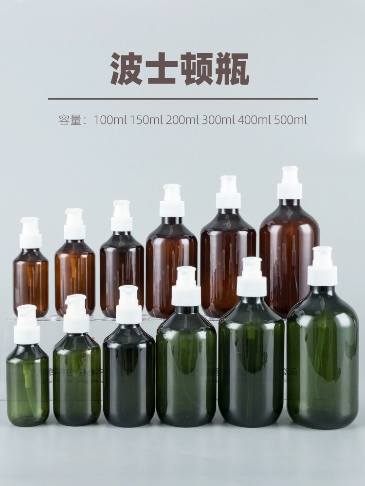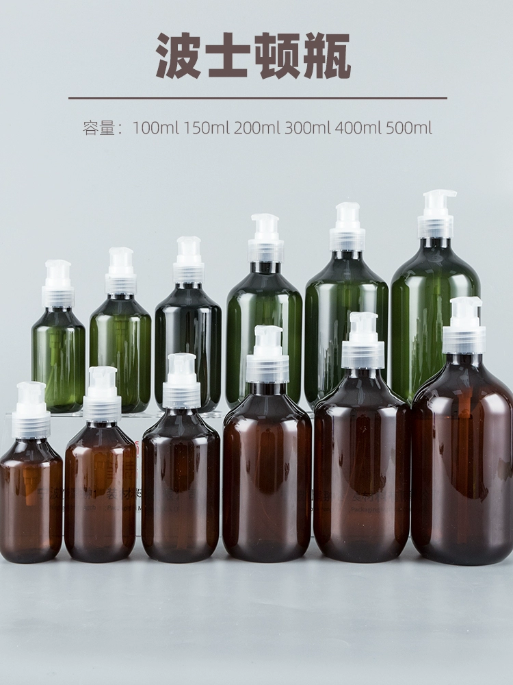 Shower gel lotion shampoo bottling plastic bottle 100ml-500ml Boston round shoulder long neck pressure pump bottle