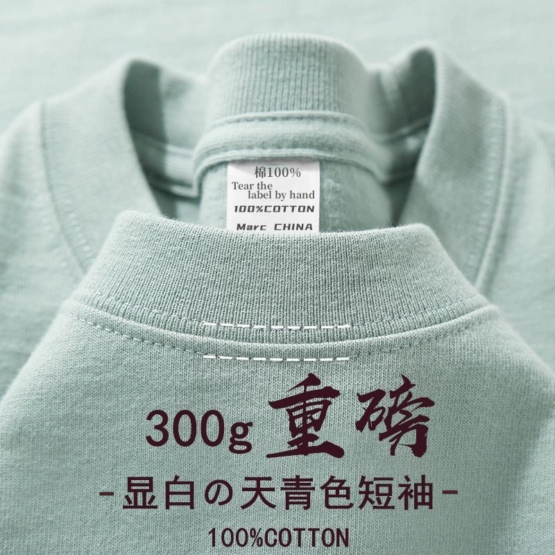 | nameOriginal | Showing daytime cyan 300g heavyweight thick opaque short-sleeved T-shirt summer pure cotton loose men's and women's bottoming shirt top |