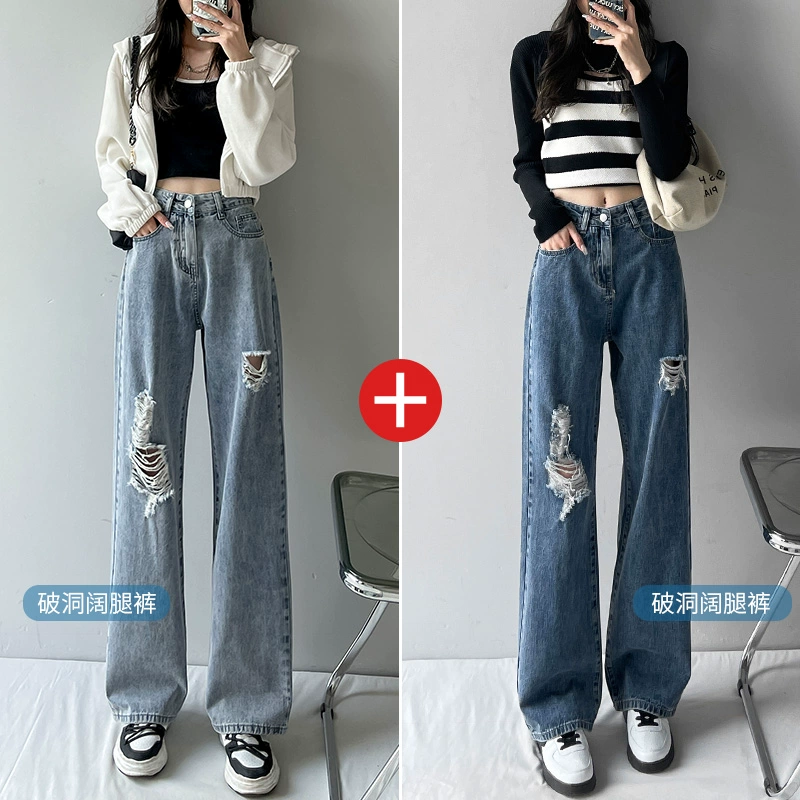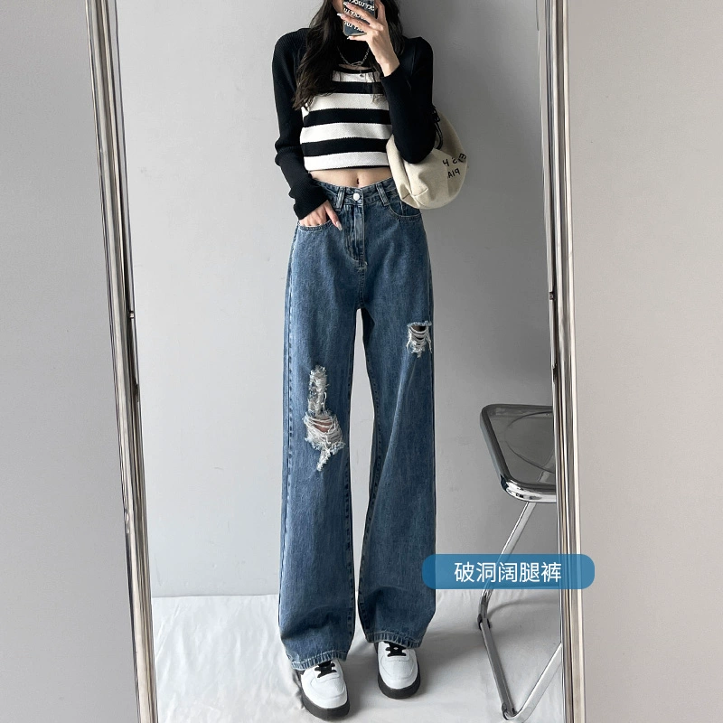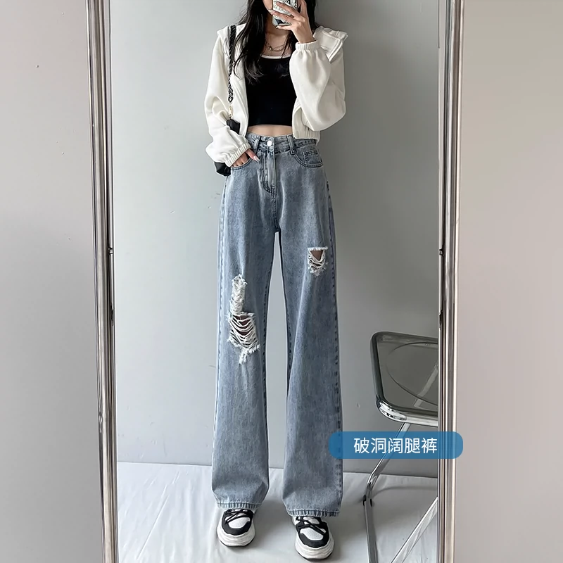 | nameOriginal | Shredded loose spring and summer high-waisted floor-length jeans |
