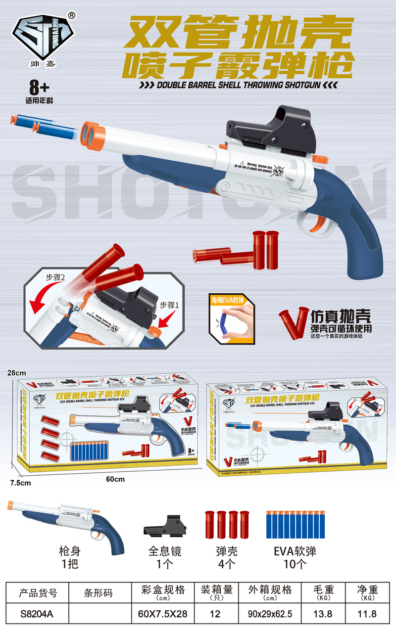 | nameOriginal | Shuai Jia's Double-tube Shell-throwing Soft Bullette Gun Parent-child Interactive Outdoor Shooting Military Model Toy Gun |
