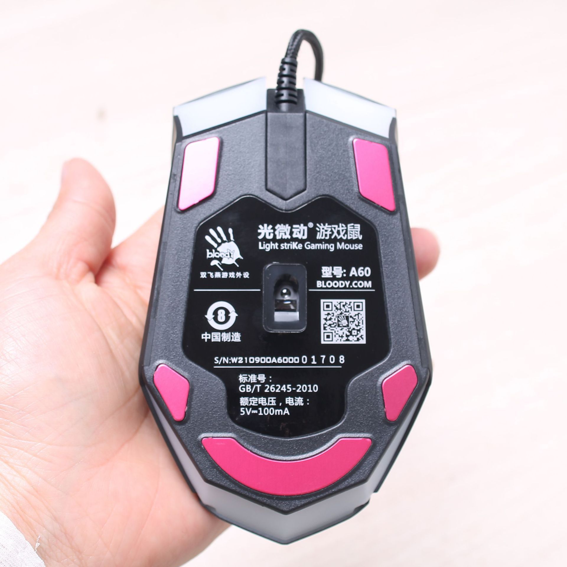 | nameOriginal | Shuangfeiyan Bloody ghost Bloody optical micro-motion dc colorful light game Mouse Internet bar e-sports chicken A60 |
