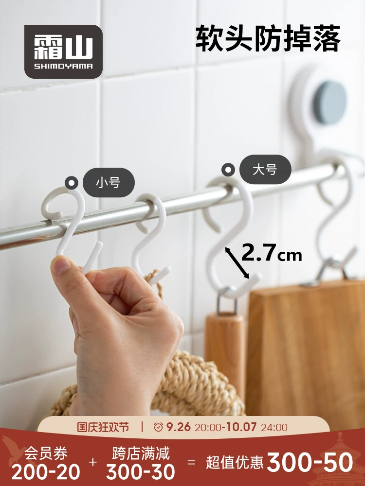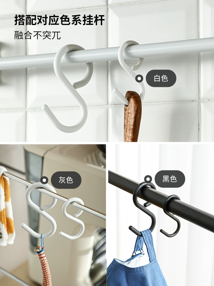 Shuangshan plastic S hook for kitchen and bathroom without punching, household soft head to prevent falling off, one-hand buckle multifunctional S-shaped hook
