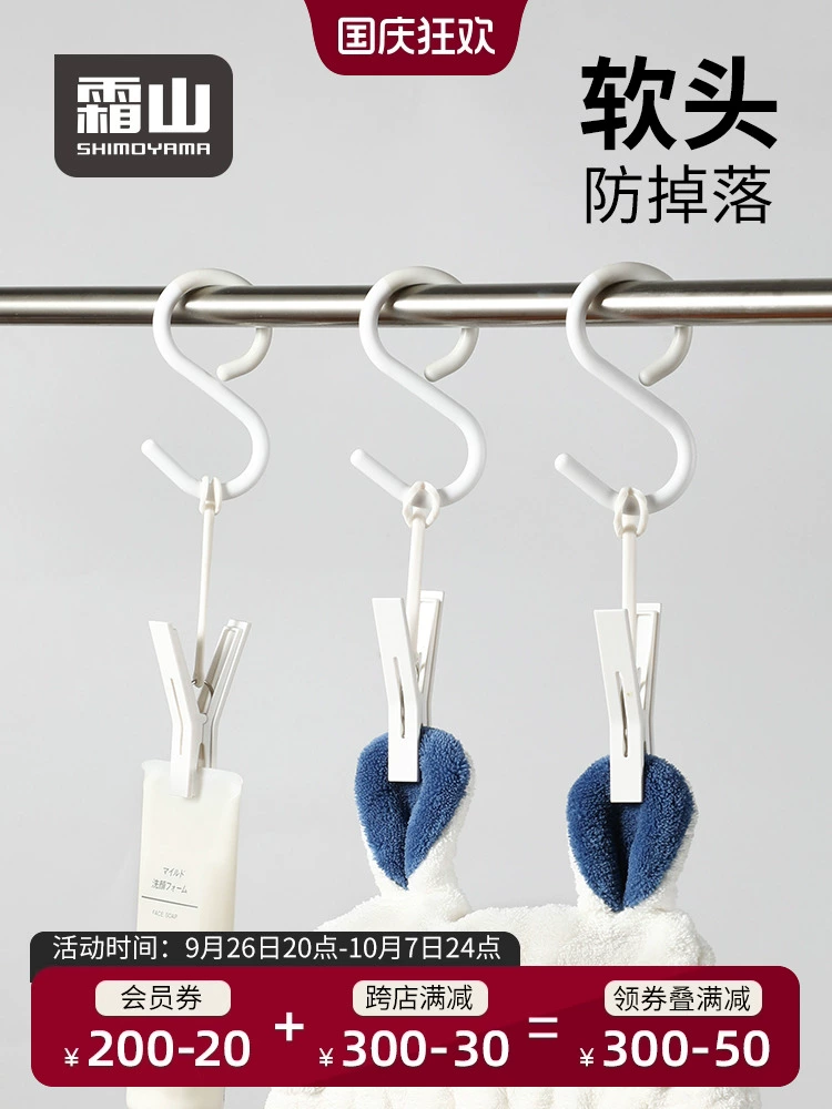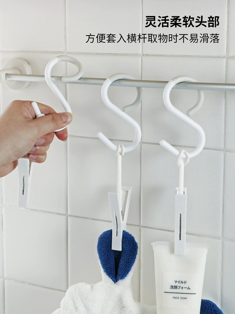| nameOriginal | Shuangshan punch-free S-shaped hook household underwear socks clothespins kitchen bathroom multifunctional clips 6 pieces |