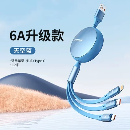 | nameOriginal | Shuotu three-in-one charging cable, one-to-three fast charging data cable, three-head suitable for Apple, Xiaomi, Android Typec mobile phone, car charger, iPhone multi-head, multi-functional telescopic 6A universal cable |