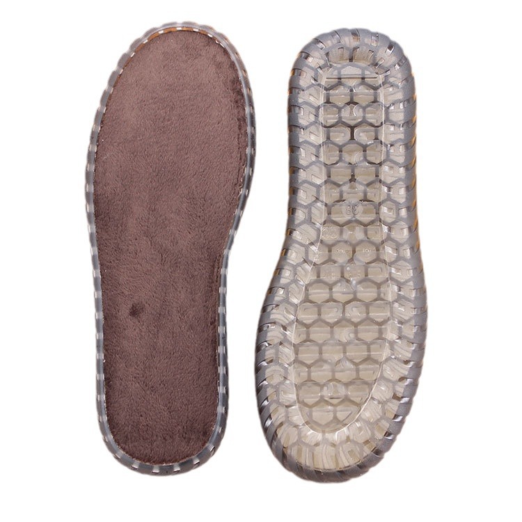 Shutai Shoes Material Anti-kick Woven New Round Head Beef Sole Large Size Hook Shoes Crystal Puff Flower Slippers Jelly Wool