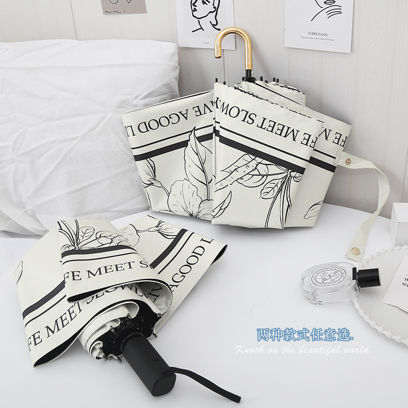 | nameOriginal | SI6K small gold hook sun umbrella automatic rain dual-use umbrella High-looking retro folding black glue sun umbrella for women |