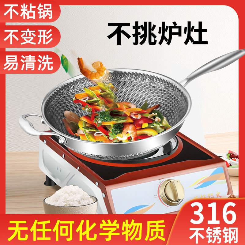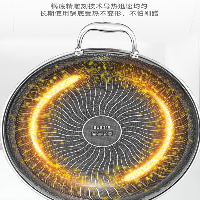 | nameOriginal | SI6K316 non-stick pan household stainless steel wok induction cooker gas universal uncoated pot honeycomb crystal pattern flat |