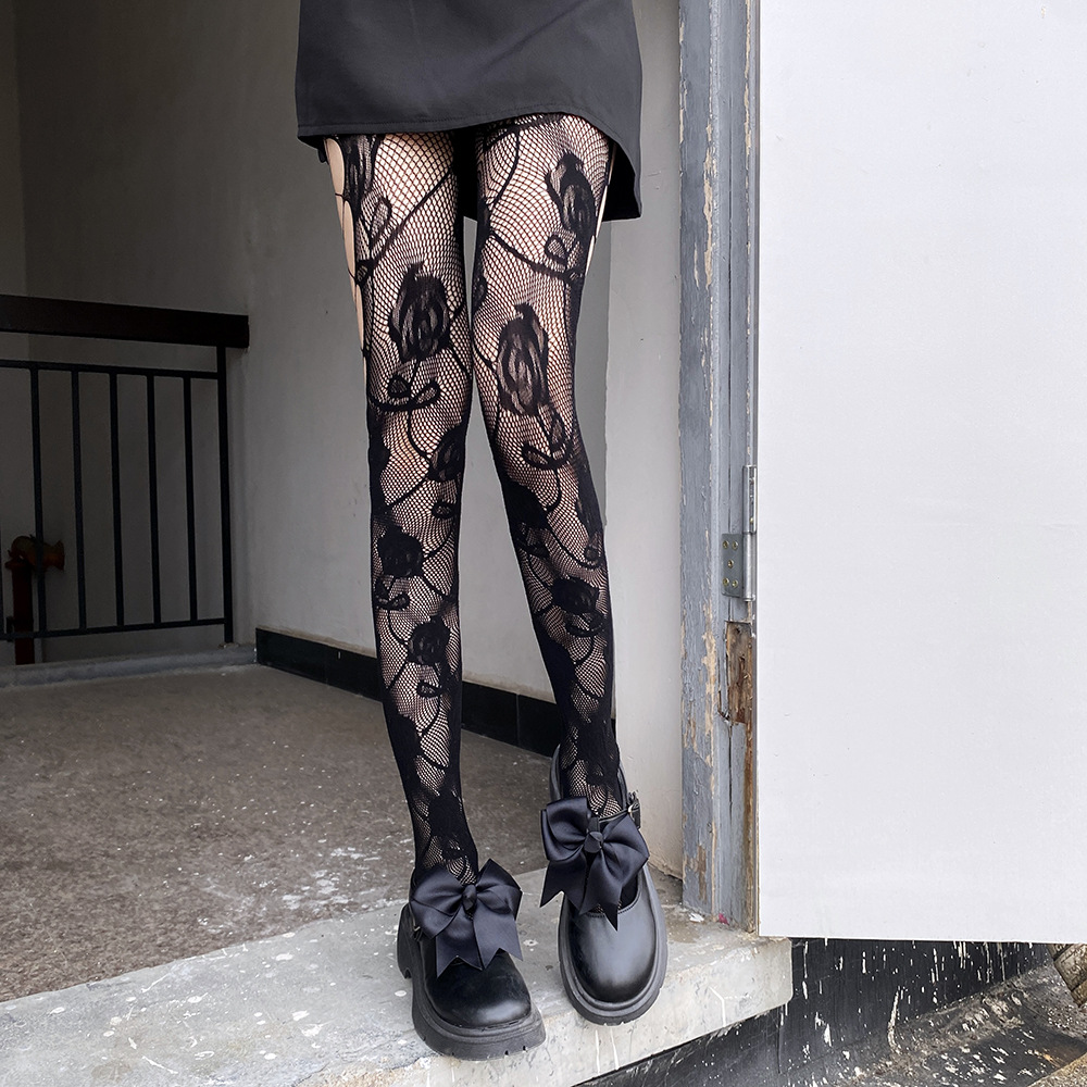 | nameOriginal | Side Exposed Leg Rose Dark Wind Net Red Black Silk Stockings Base Stockings JK Thin Hollow-out Jacquard Silk Stockings |
