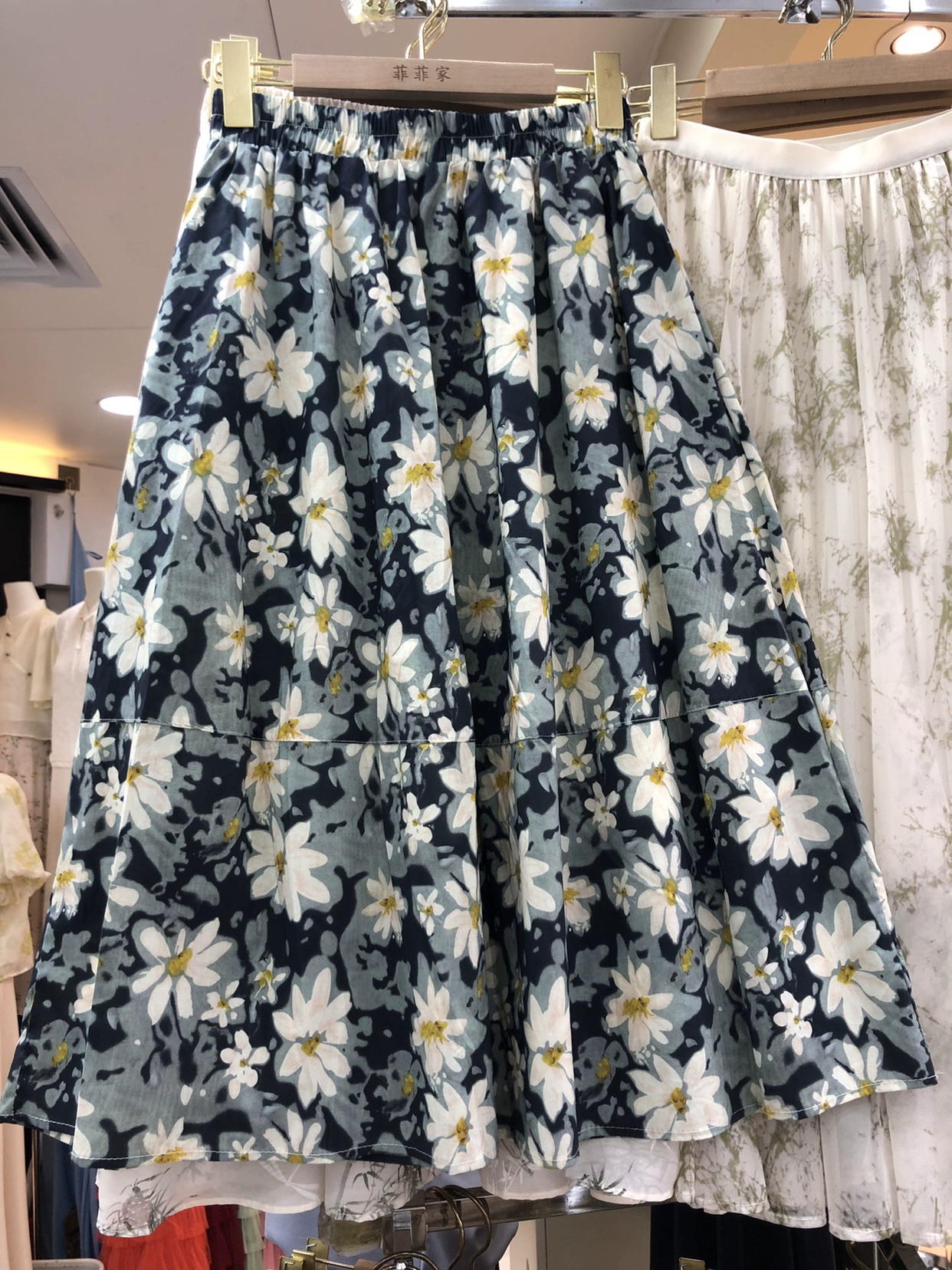 | nameOriginal | Side pocket spring and summer mid-length A-line skirt with oil painting print |