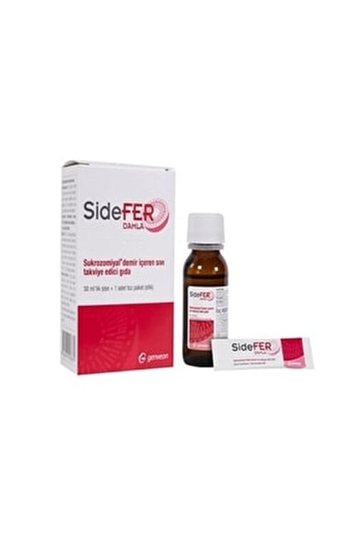 Sidefer Drops Drops 30 ml Content: Reinforcing Food Preparation Containing Iron 7mg Sucrosomial Iron for 1 ml: Discharge the contents of the stick into the supplied vial. Shake after closing the lid of the vial. It is recommended to shake the bottle before each use. Recommendation for use: For children of 4-10 years old, you can drink 10 drops (1 ml) directly into the mouth or half a glass of water with dinner in the morning vaya. Packaging: 30ml bottle+1 pc powder package (stick) Supplementing foods cannot replace normal nutrition