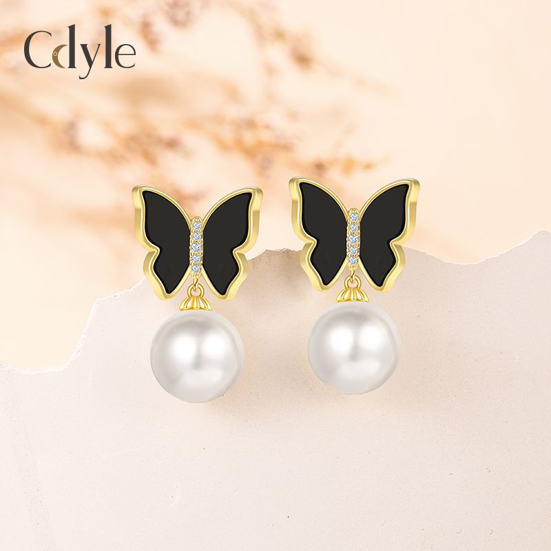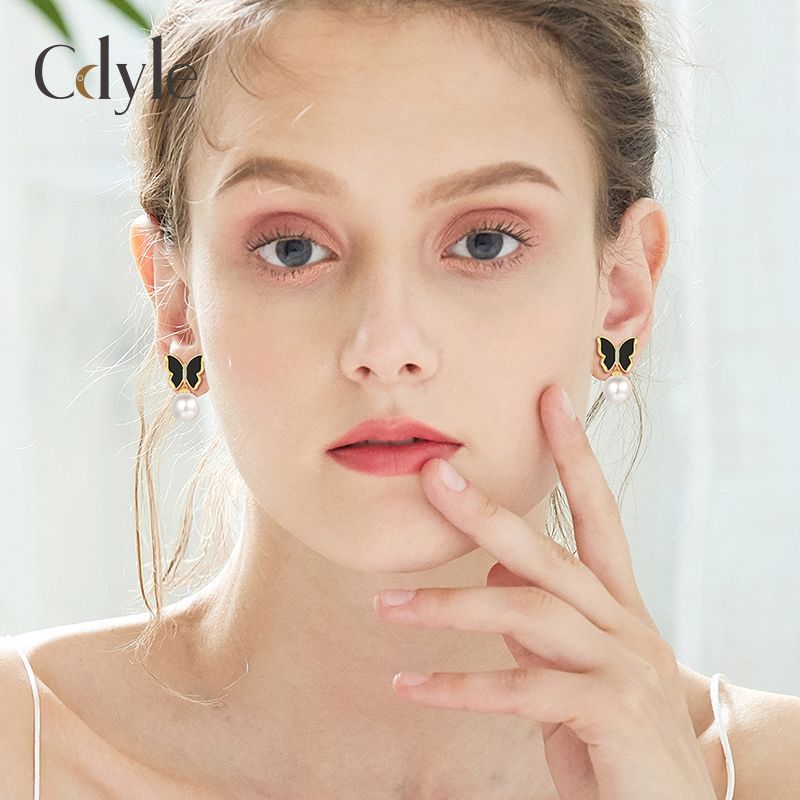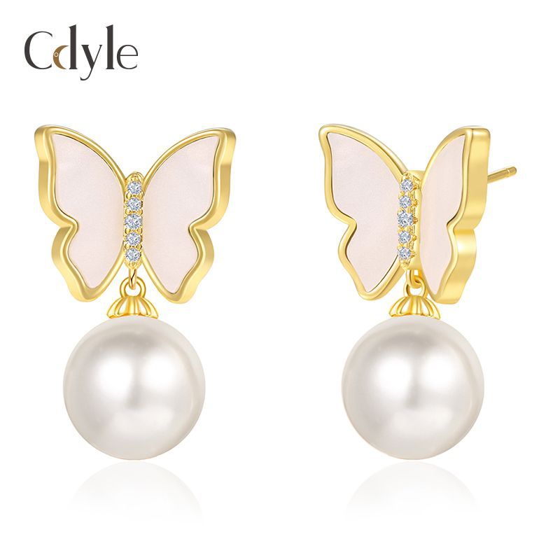 Sidel European and American Cross-border New Butterfly Earrings Bead Earrings Advanced Design Sense Fashion Personalized Silver Pin Earrings