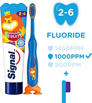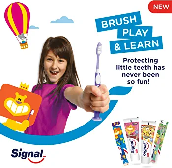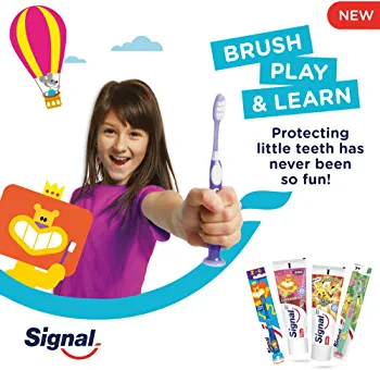 Signal Kids Toothpaste prevents tooth decay & tooth cavity, Strawberry,75ml Signal Kids Toothbrush, Ultra Soft, Pack of 1, Assorted Signal Sugar Acid Protection Kids Toothpaste, Mint 75 ml Signal Pokemon Toothbrush, Ultra Soft, suitable for little teeth & gums, 1 Pc