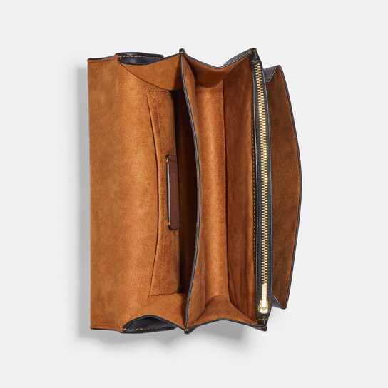 This product features a combination of signature coated canvas and smooth leather. It has multiple pockets inside, including a zip and multifunction pockets, and is secured with a snap closure and fabric lining. There is also an outside slip pocket for additional storage. The strap has a 22″ drop and can be worn in three different ways: short or long on the shoulder, or as a crossbody style. The dimensions of the product are 8 1/2″ (L) x 6 1/4″ (H) x 2 3/4″ (W), and its style number is CD866.