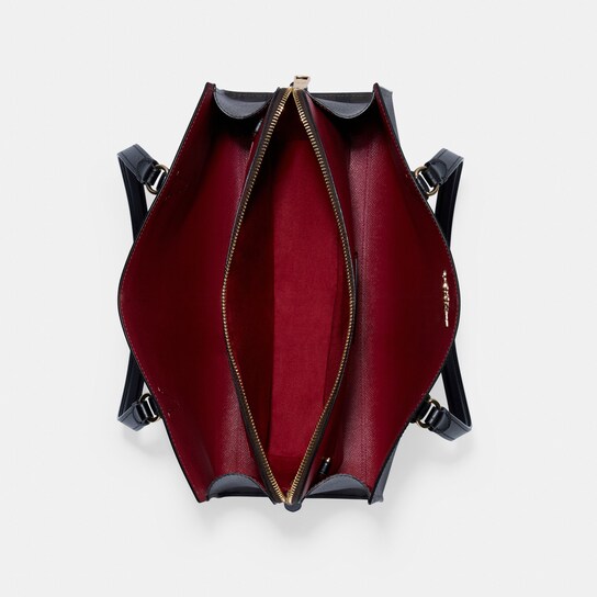 This product features a combination of signature coated canvas and smooth leather, making it a stylish and durable option for carrying a 13″ laptop. It also includes convenient inside pockets for cell phones and other small items, as well as side open compartments for additional storage. The bag can be carried by its handles with a 9″ drop or with the detachable strap, which has a 19 1/2″ drop for shoulder or crossbody wear. The zip closure and fabric lining ensure the safety of your belongings, while the four protective feet at the base keep the bag stable and protected. The dimensions of the bag are 13 3/4″ (L) x 10 1/4″ (H) x 5 3/4″ (W), and its style number is C4075.