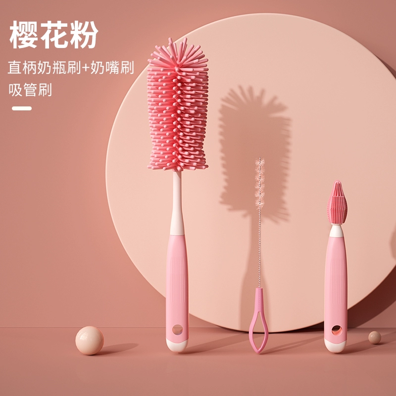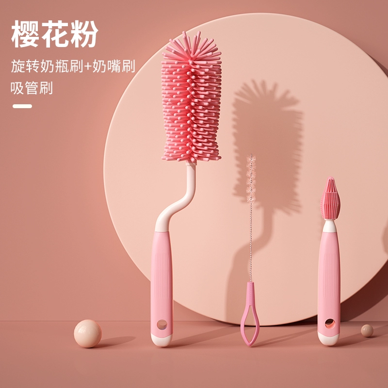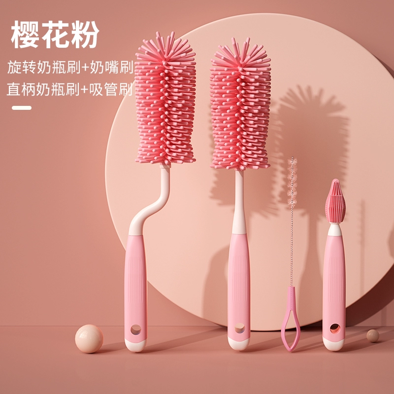 Silicone bottle brush cleaning brush newborn baby special drain rack long-handled rinse pacifier brush cleaning brush set