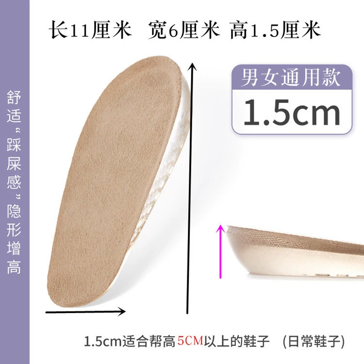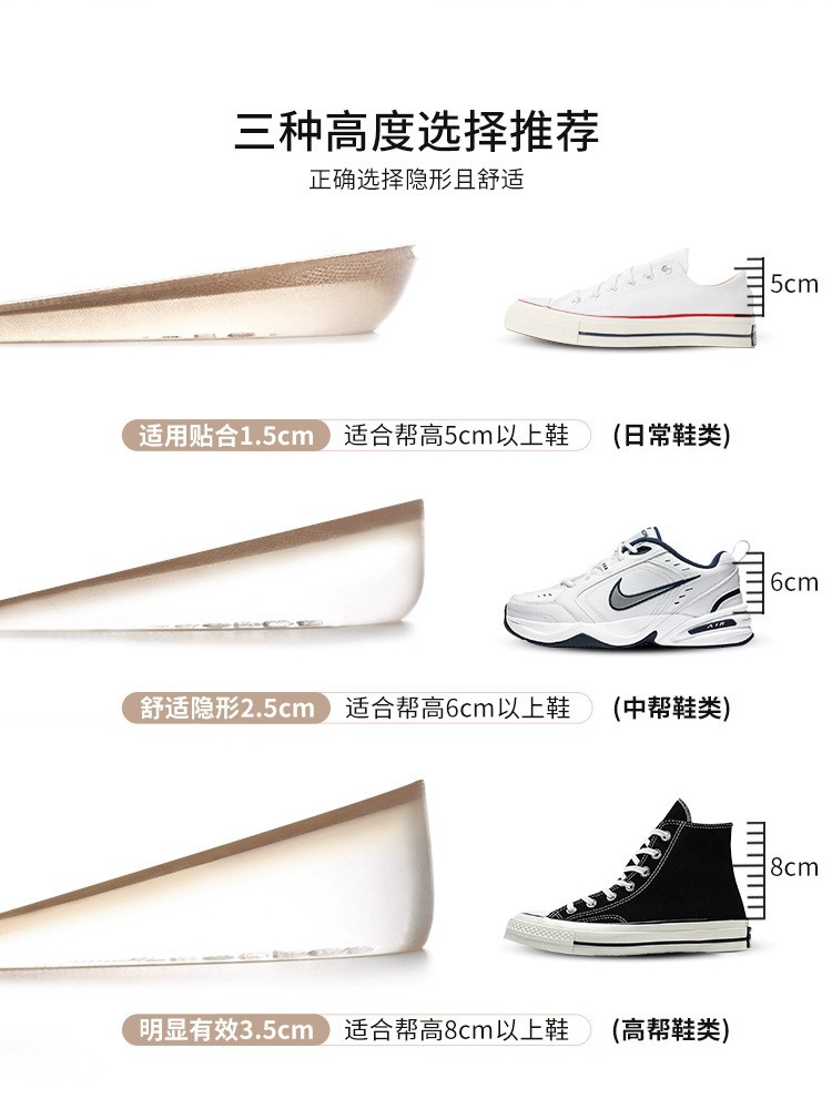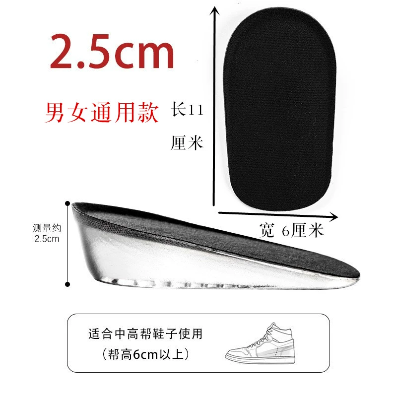 | nameOriginal | Silicone heightening insole women's half-pad men's invisible sports and leisure canvas shoes inner heightening pad 3cm long legs 1 |