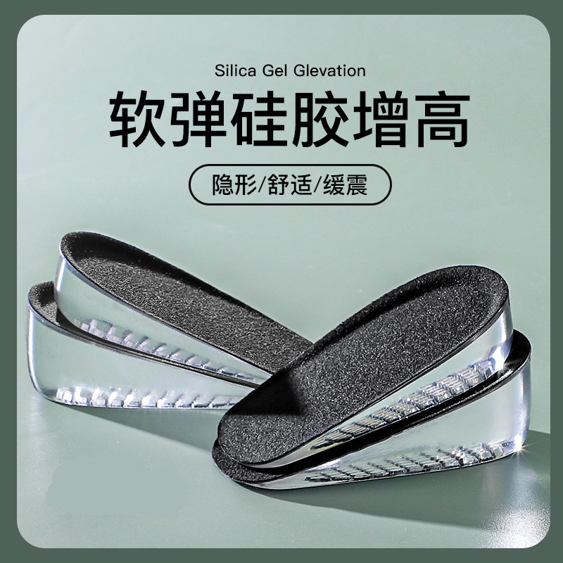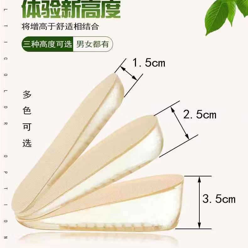 Silicone invisible inner height increasing insole female height increasing insole male sports shock absorbing half pad comfortable self-adhesive silicone inner height increasing