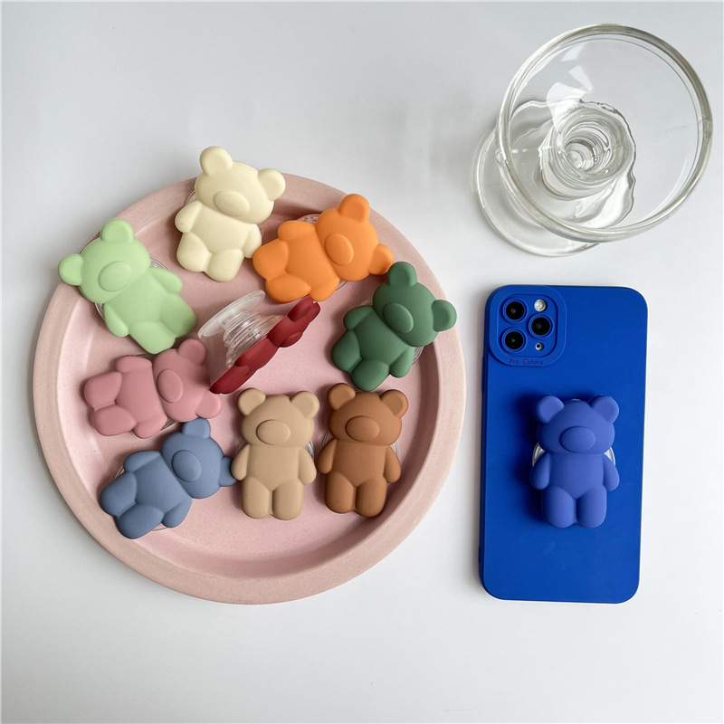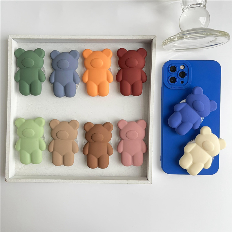 Silicone Solid Color Macaron Bear Mobile Phone Airbag Bracket Lazy Retractable Desktop Adhesive Mobile Phone Case Bracket