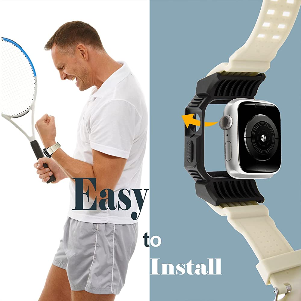 Introducing the Blingbrione Men Band with Case Compatible Apple Watch Strap – the perfect accessory for your Apple Watch Series 8, 7, 6, 5, 4, 3, 2, or 1 SE. This silicone soft sport cool wristband is designed to fit 45mm, 44mm, and 42mm Apple Watch models, making it a versatile option for any user. The rugged metal protective bumper cover adds an extra layer of protection to your watch, ensuring that it stays safe and secure during even the most intense activities. The Blingbrione Men Band with Case is perfect for active individuals who want a stylish and functional accessory for their Apple Watch. So why wait? Upgrade your Apple Watch today with the Blingbrione Men Band with Case Compatible Apple Watch Strap!