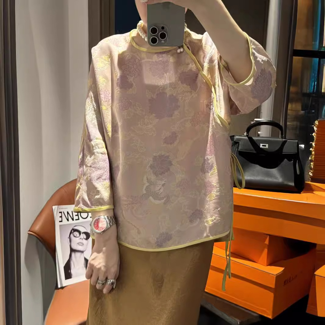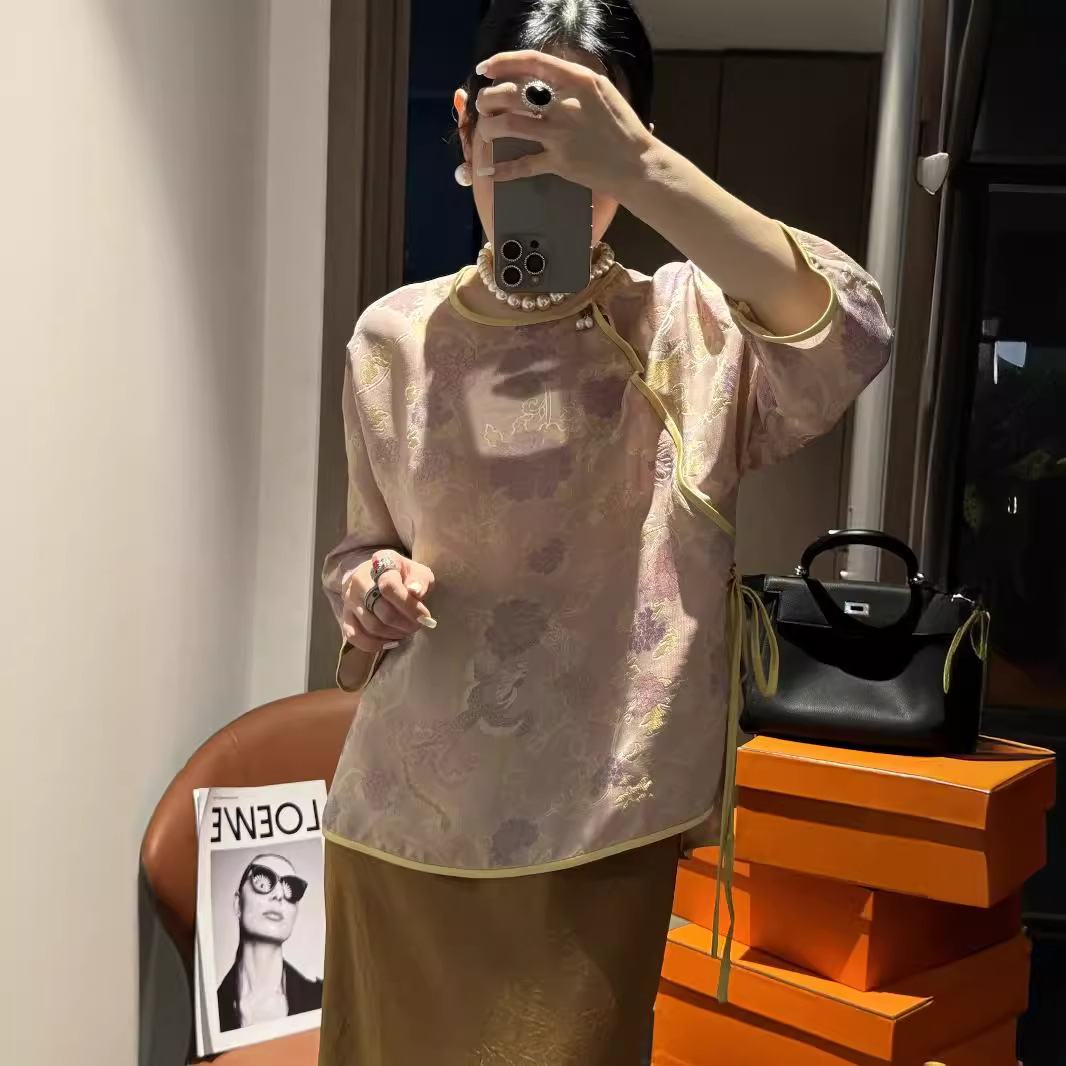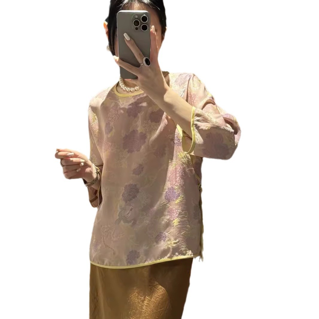| nameOriginal | Silk Alien Rose Top New Chinese Style National Style Round Neck Slant Casual Loose Comfortable Breathable All-match Elegant T-shirt |