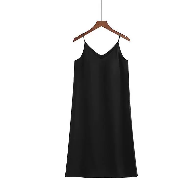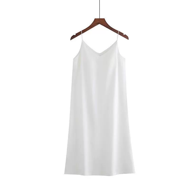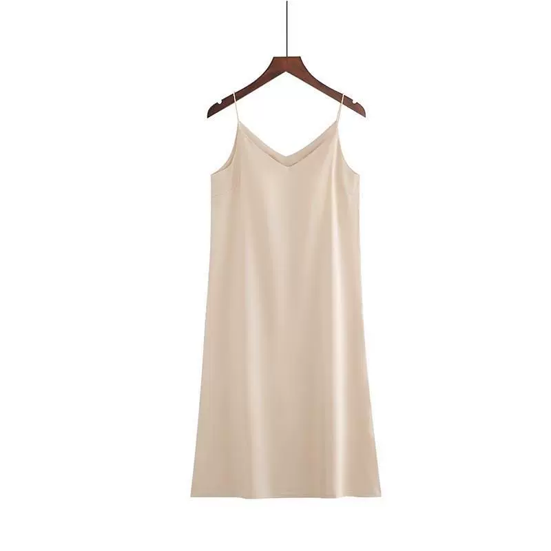 | nameOriginal | Silk camisole dress with breast pads for women V-neck jumpsuit home sexy large size anti-exposure bottoming mid-length petticoat |