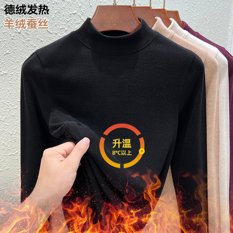 | nameOriginal | Silk cashmere velvet half turtleneck bottoming shirt Women's heating one-piece velvet inner wear spring and autumn double-sided brushed warm top |