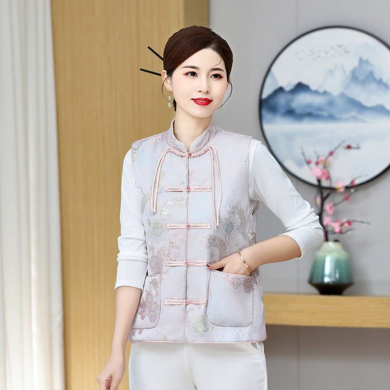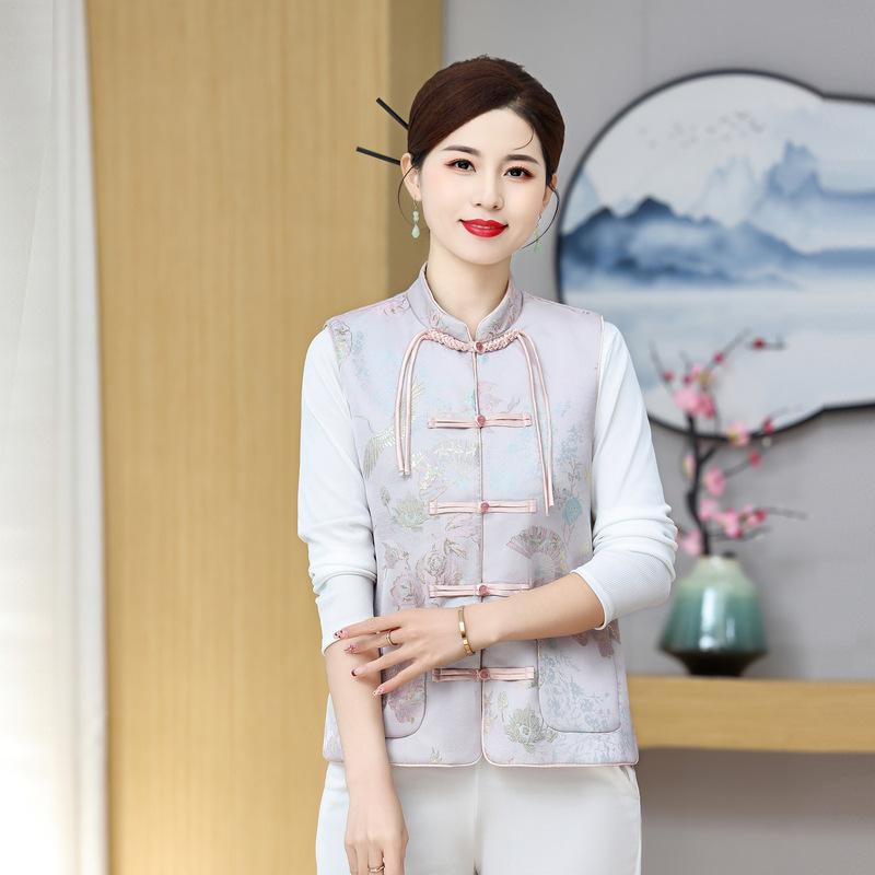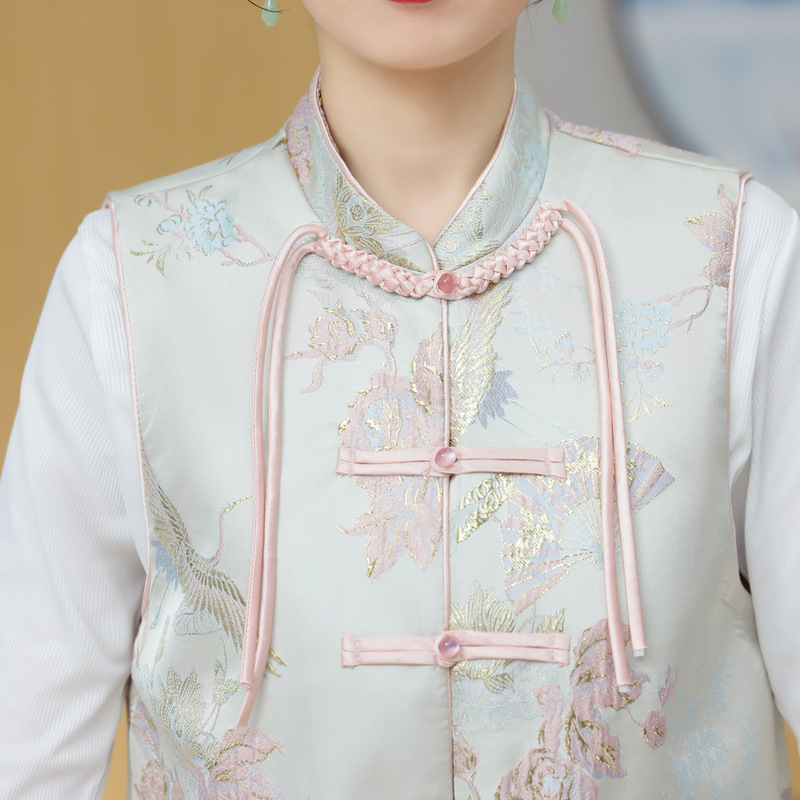 Silk Chinese Style Vest Chinese Vintage Tassel Spring and Autumn Vest Brocade Button Jacquard Tang Dress Women's Top Jacket
