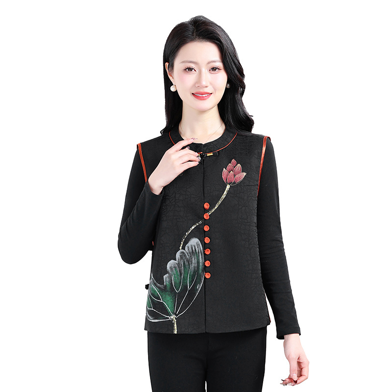 | nameOriginal | Silk Chinese style vest double-sided retro round neck short heavy-duty embroidery buckle jacquard women's top outer wear |