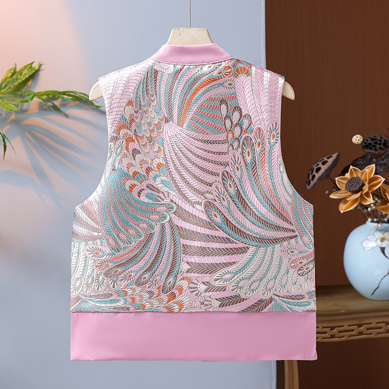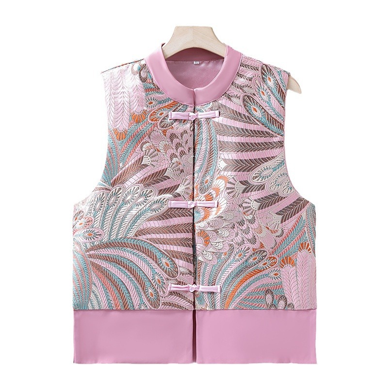 | nameOriginal | Silk Chinese Style Vest Woven Brocade Embroidered Vintage Tang Coat Heavy Industry Button Vest Women's Top Jacquard Jacket |