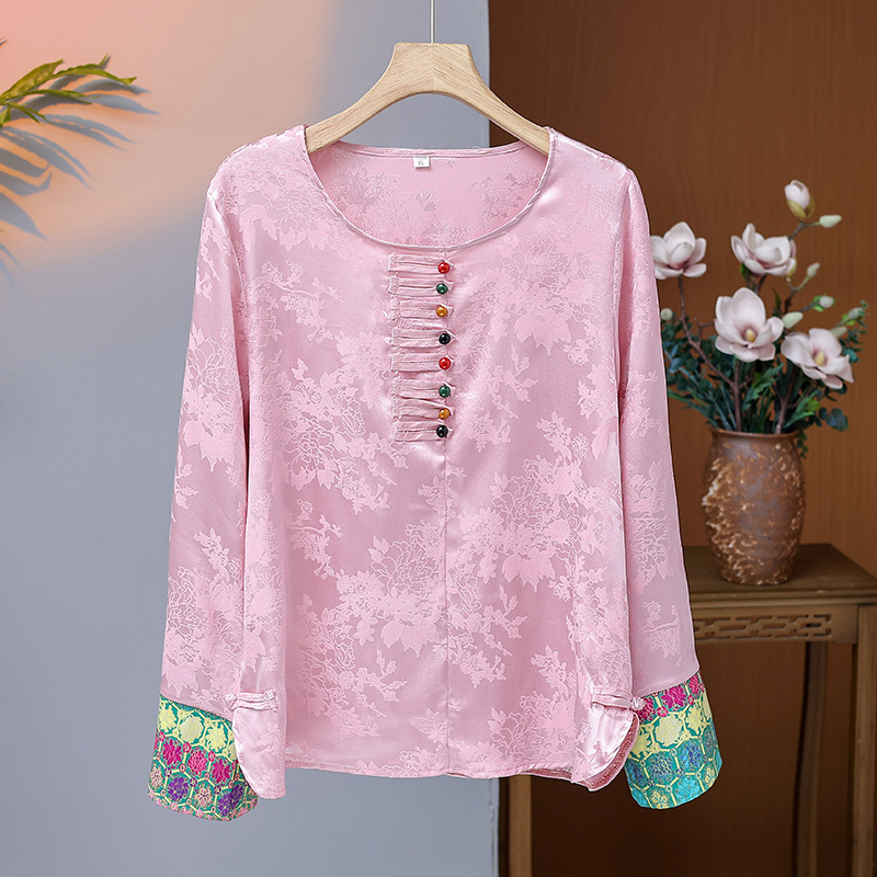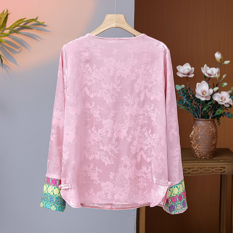 | nameOriginal | Silk Jacquard Pullover New Chinese Style National Fashion Vintage Buckle Tang Dress Women's Long Sleeve T-Shirt plus size Base Shirt |