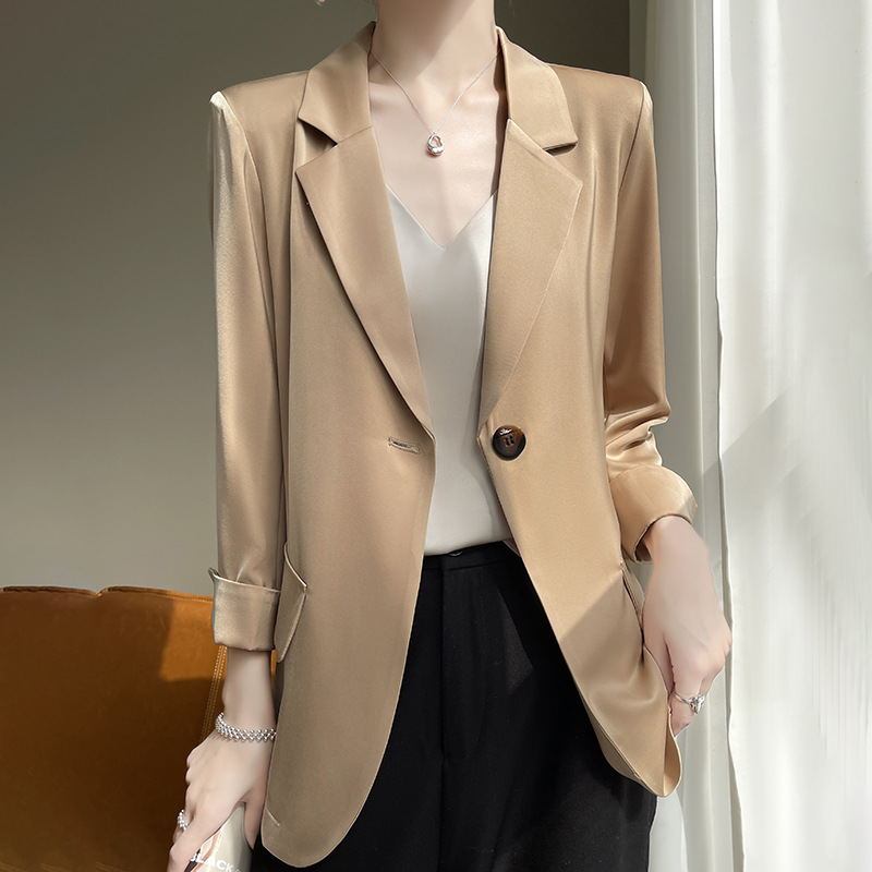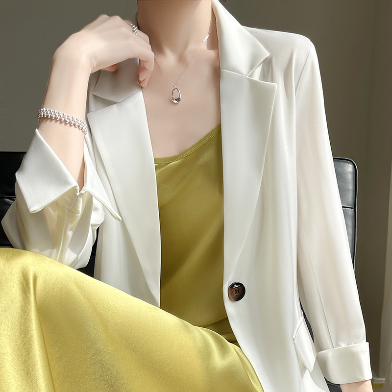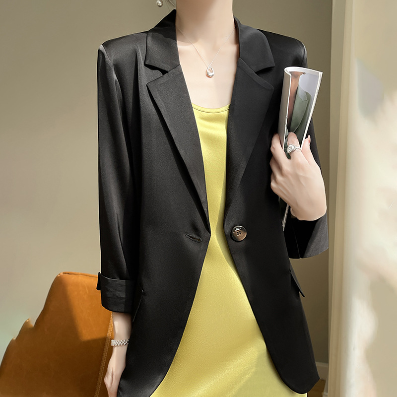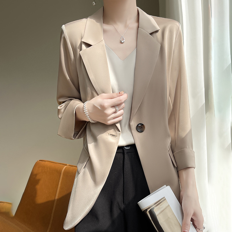 | nameOriginal | Silk Satin 2024 Spring and Summer New Women's Suit Jacket Lapel Seven-point Sleeve Sunscreen Elegant All-match Top |