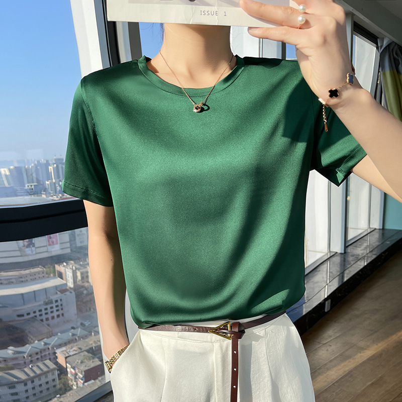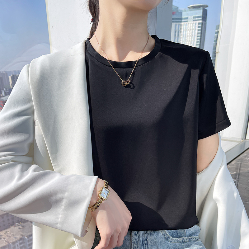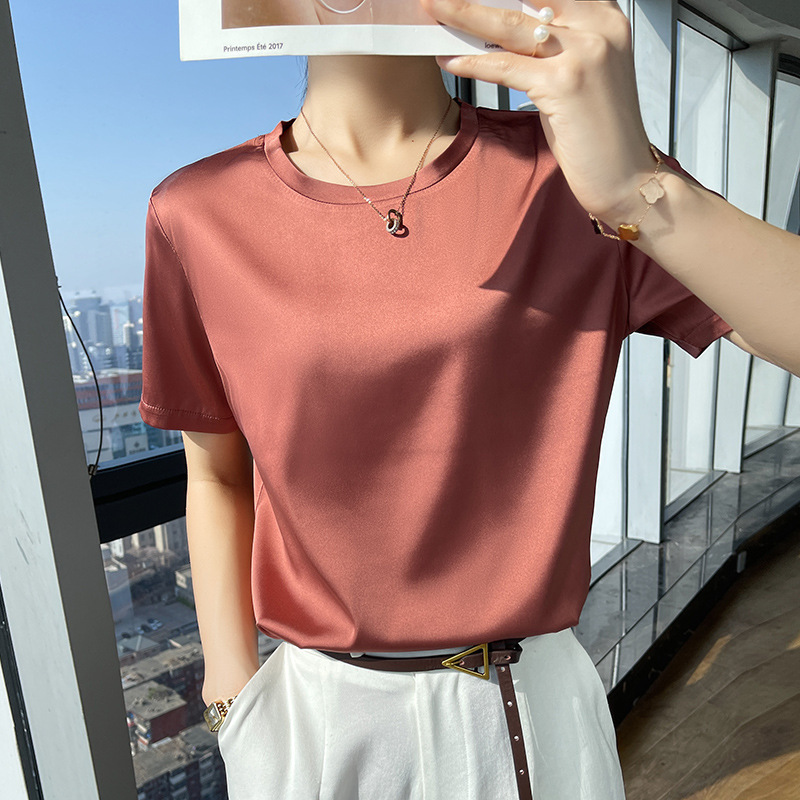| nameOriginal | Silk Satin Short-sleeved T-shirt Women's Spring 2023 New Thin Round Neck Loose Commuting All-match Slim-fit Top |