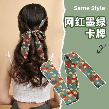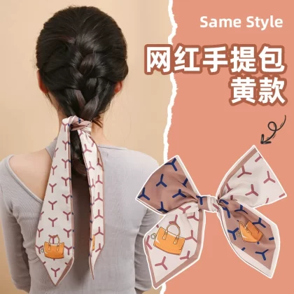 | nameOriginal | Silk scarf headband women's hair ribbon headwear Internet celebrity 2024 new headscarf winter thin braided hair streamer |